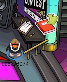 2. Waddle into the Night Club, then spot the pin on the right side of the room. Click on it, and select 'Yes.'